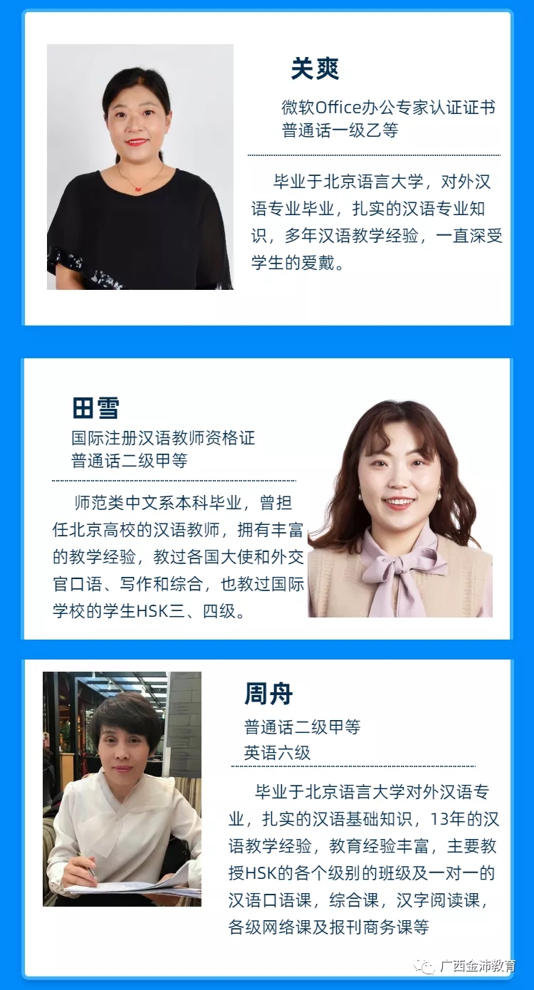 學(xué)習(xí)漢語(yǔ)找金沛,金沛漢語(yǔ)學(xué)院擁有雄厚師資力量和優(yōu)秀的教師團(tuán)隊(duì),中國(guó)名校名師在線課堂,扎實(shí)的專業(yè)知識(shí)、漢語(yǔ)考試技巧、方向,根據(jù)學(xué)生目標(biāo),制定適合的教學(xué)計(jì)劃,助你順利過關(guān)!