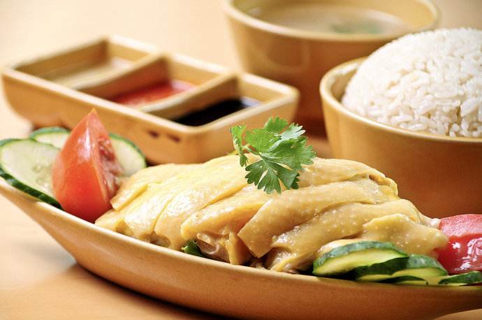 “你和新加坡的距離,只有一碗海南雞飯?!彪m然名字上說是海南雞,但真正紅起來,還是因為它被評為新加坡的國菜。海南雞飯又叫文昌雞飯,是用海南省文昌市的文昌雞做白切,并淋上醬油,搭配白米飯,鮮嫩清爽。
