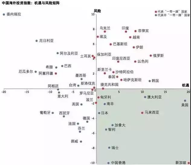 ▲中國海外投資指數(shù):機(jī)遇與風(fēng)險(xiǎn)矩陣