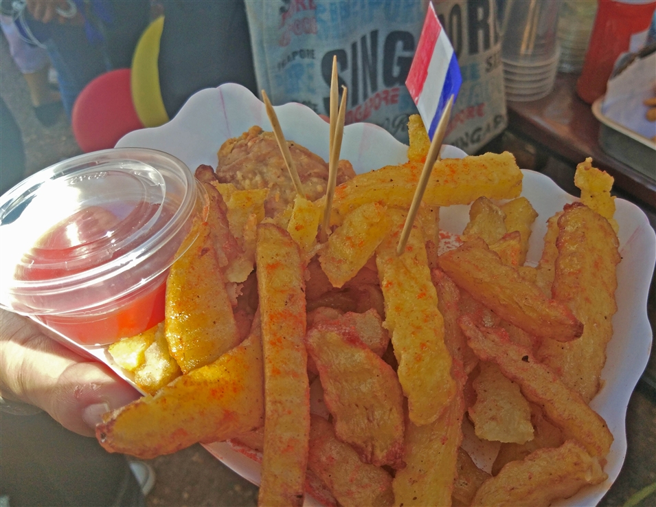 這是一場以各國美食為媒介的文化互動,文學院各系的學生在美食活動現(xiàn)場展示了日本、中國、老撾、韓國、法國等歐、亞兩州不同國家的美食,比如中國的燒仙草、法國的薯條、老撾的肉串等,老撾國立大學的學生在暢享美食之際也在進行飲食文化的分享與交流。