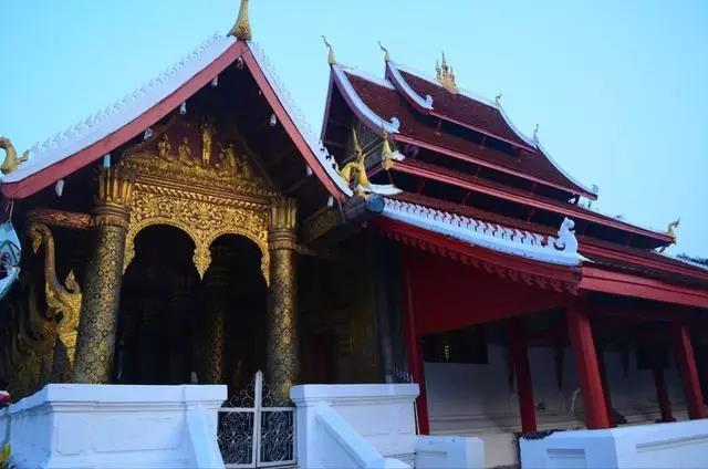 邁佛寺是瑯勃拉邦最著名的寺廟之一,也是這里最大,裝飾最華麗的寺廟。寺廟建于18世紀,座落于王宮博物館附近。寺內(nèi)供奉著一座綠寶石鑄成的佛像。邁佛寺的建筑風格比較特別,其五層檐的佛殿遵循了典型的瑯勃拉邦風格,但通常建在旁邊的回廊卻建在了山墻的位置,很不尋常。邁佛寺曾經(jīng)毀于入侵者手中,除了主殿外其他建筑大部分是重修的。寺廟的前廊有裝飾華麗的柱子和奢侈的純金浮雕。浮雕敘述了佛祖生平和老撾雨神的故事,也有來自羅摩衍那和鄉(xiāng)村生活的場景。在重要的節(jié)日里,勃拉邦佛將從皇宮博物館里請出放在這里供信徒們參拜。