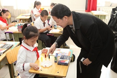 11月18日,泰國孔敬大學(xué)孔子學(xué)院舉行年度第四次YCT中小學(xué)漢語考試, 5012名考生同時(shí)參加考試,創(chuàng)下單次考生人數(shù)全泰第一。隨著“一帶一路”建設(shè)的推進(jìn),泰國“漢語熱”持續(xù)升溫。圖為孔敬大學(xué)附小考場內(nèi)監(jiān)考老師在細(xì)心指導(dǎo)小學(xué)生
