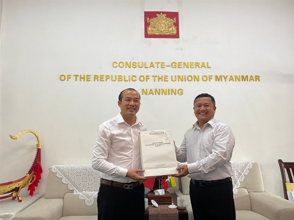 202099日下午,廣西金沛教育執(zhí)行董事粟宥朝、國際部主任陸士偉、新媒體中心韋清清一行拜訪了緬甸聯(lián)邦共和國駐南寧總領(lǐng)事館,總領(lǐng)事梭岱南熱情接見了我司的到訪,并就“關(guān)于中緬兩國教育交流與合作”展開了探討。